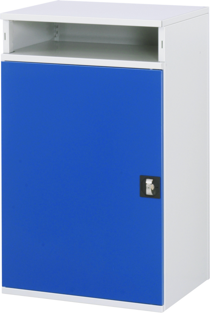 - Basisschrank geteilt in separat nutz- und bedienbares Klein- und Flügeltürfach. Kabeldurchlässe an der Schrankrückseite, im Deckel sowie im Innenteil.