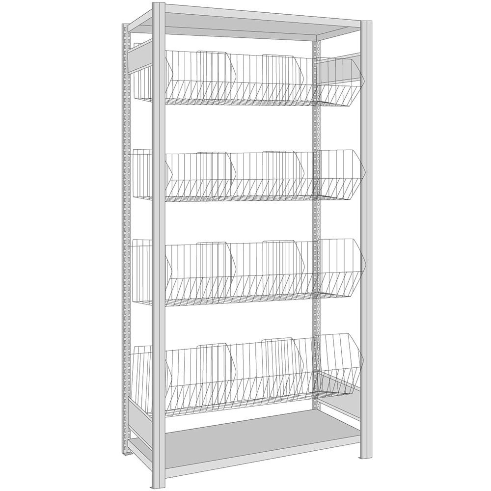 Produktinformationen "BERT-Kleinteileregal mit Gitterkörben und Stahlfachboden - Grundfeld"