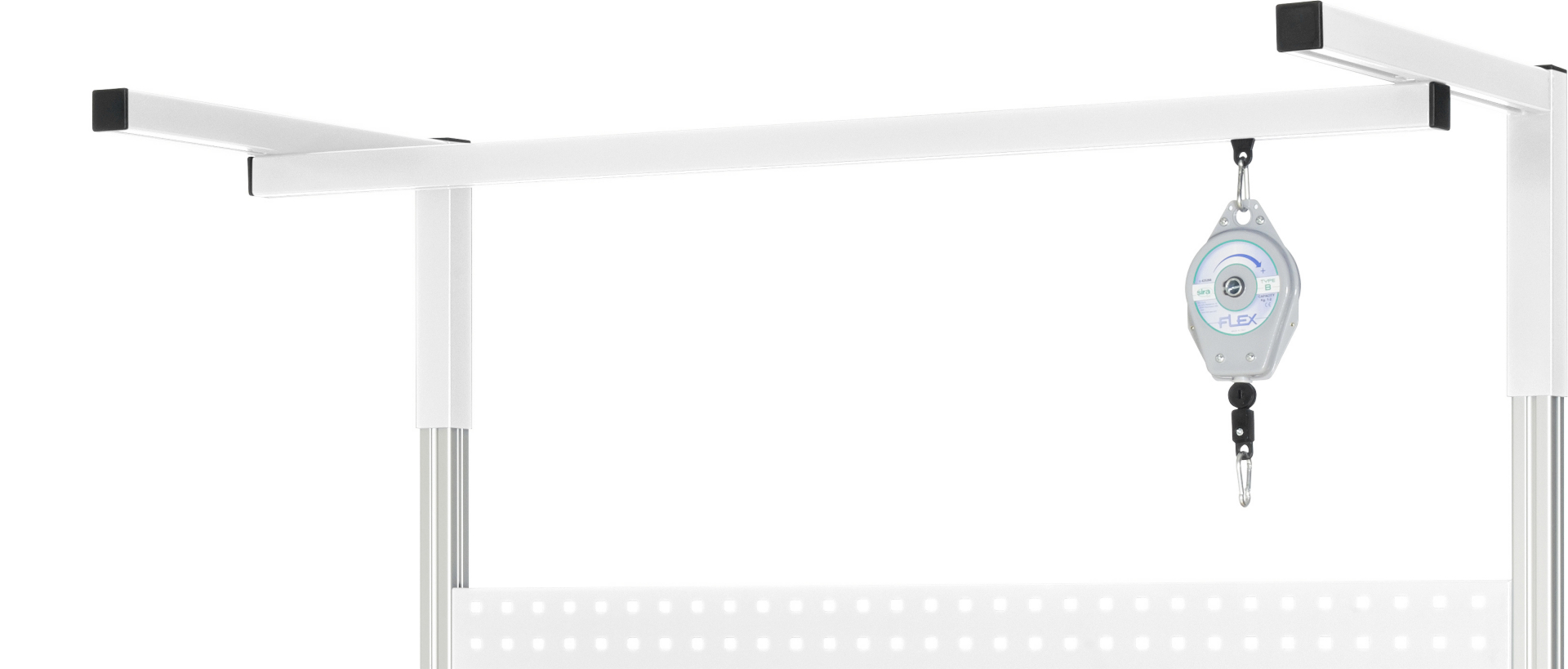 - Montage an: Laufschiene/Montageschiene (es können mehrere Laufwagen mit Karabiner in eine Laufschiene/Montageschiene integriert werden).