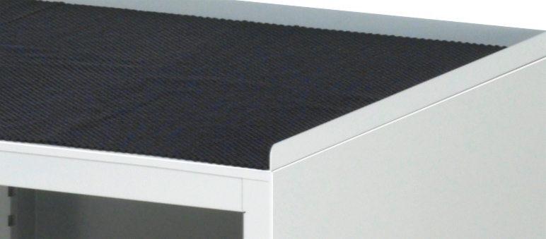 - Schrank oben inkl. Metallauflage mit 3-seitigem Abrollrand und Anti-Rutsch-Matte, Höhe 25 mm.