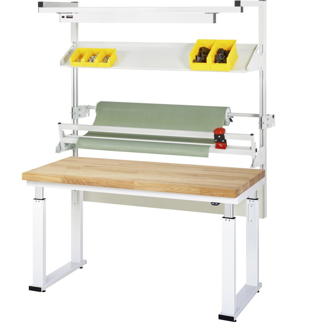 - Elektrische Verstellung mittels den 4 Hubsäulen durch integrierten Linearantrieb. Geräuscharme, stufenlose und absolut synchrone Verstellung der Arbeitshöhe auch bei unsymmetrischer Belastung. Verstellweg 38 mm/s (ohne Zuladung). Einschaltdauer 10 % (6 Minuten pro Stunde oder 2 Minuten Dauerbetrieb bei Volllast). Stromverbrauch im Standby-Modus nur 0,1 W.