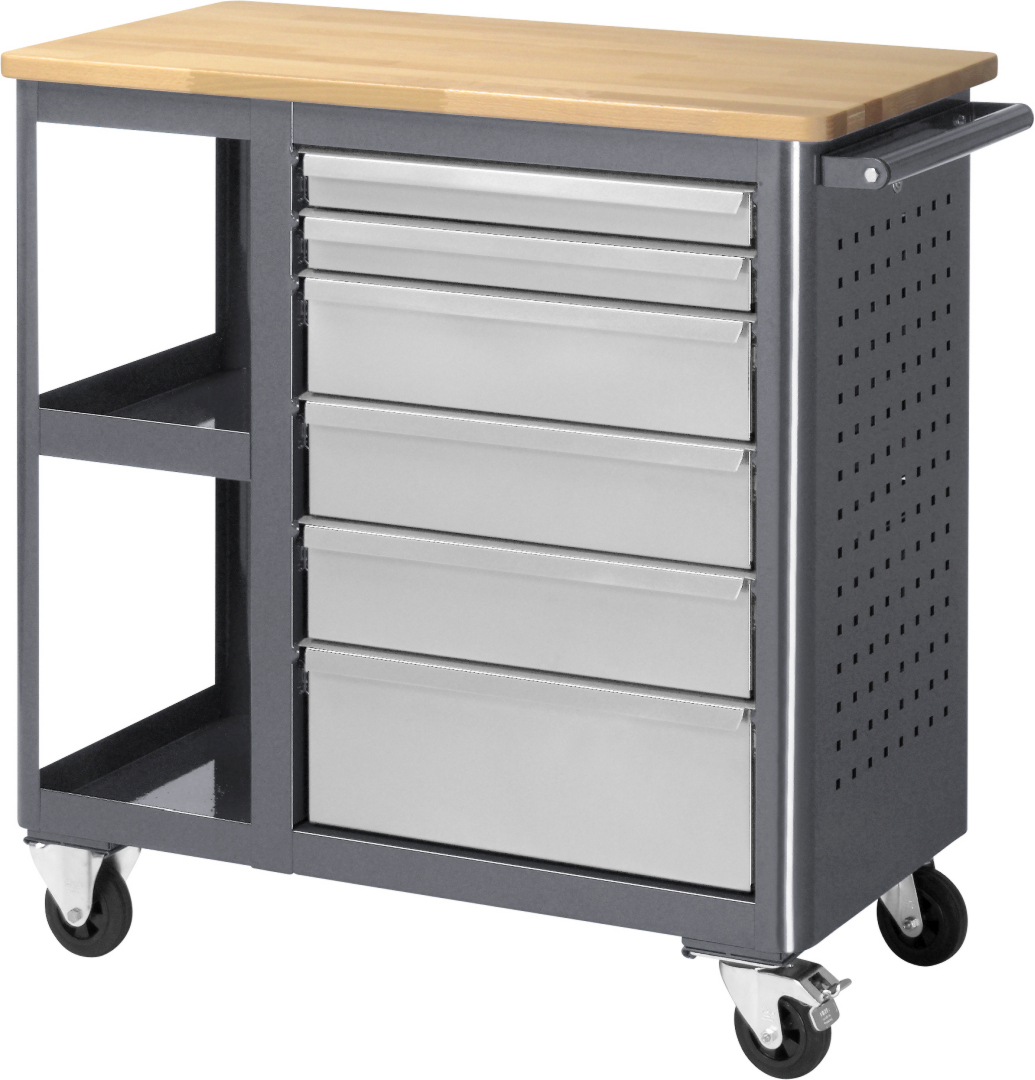 - Werkbank oben inkl. einer Buche-Massiv-Arbeitsplatte, Stärke 25 mm.