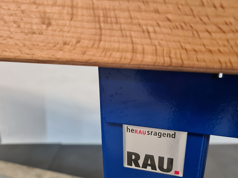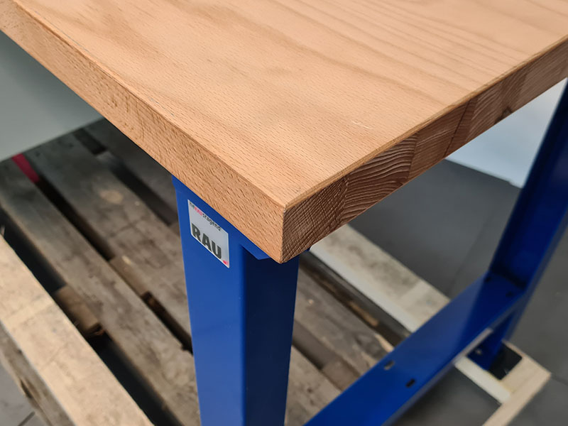 - Buche-Massiv-Arbeitsplatte mit beidseitigem Deckfurnier, Stärke 40 mm.