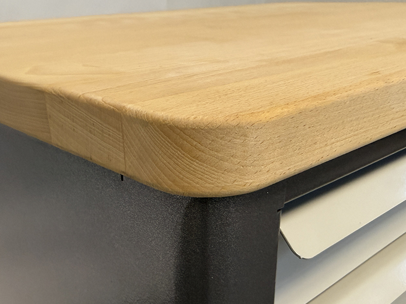 - Schrank oben inkl. einer Buche-Massiv-Arbeitsplatte, Stärke 25 mm.